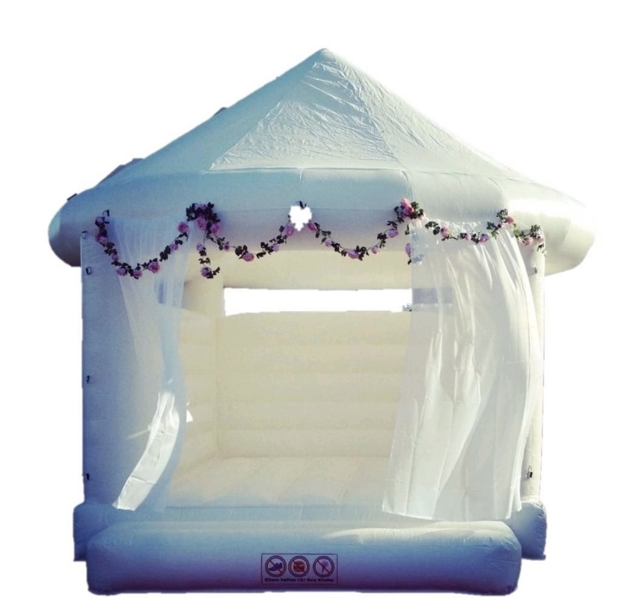 Unsere Hüpfburg "Hochzeit" ist ein Hingucker auf jeder Hochzeitsfeier. Sie ist robust und schnell aufzubauen.